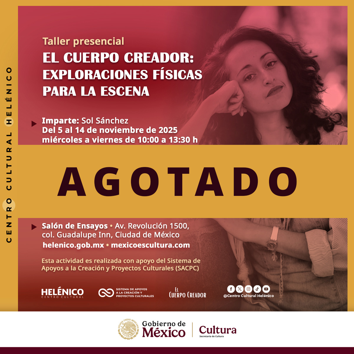 Sede: Salón de ensayos del Centro Cultural Helénico (Av. Revolución 1500, col. Guadalupe Inn, Alcaldía Álvaro Obregón, Ciudad de México)