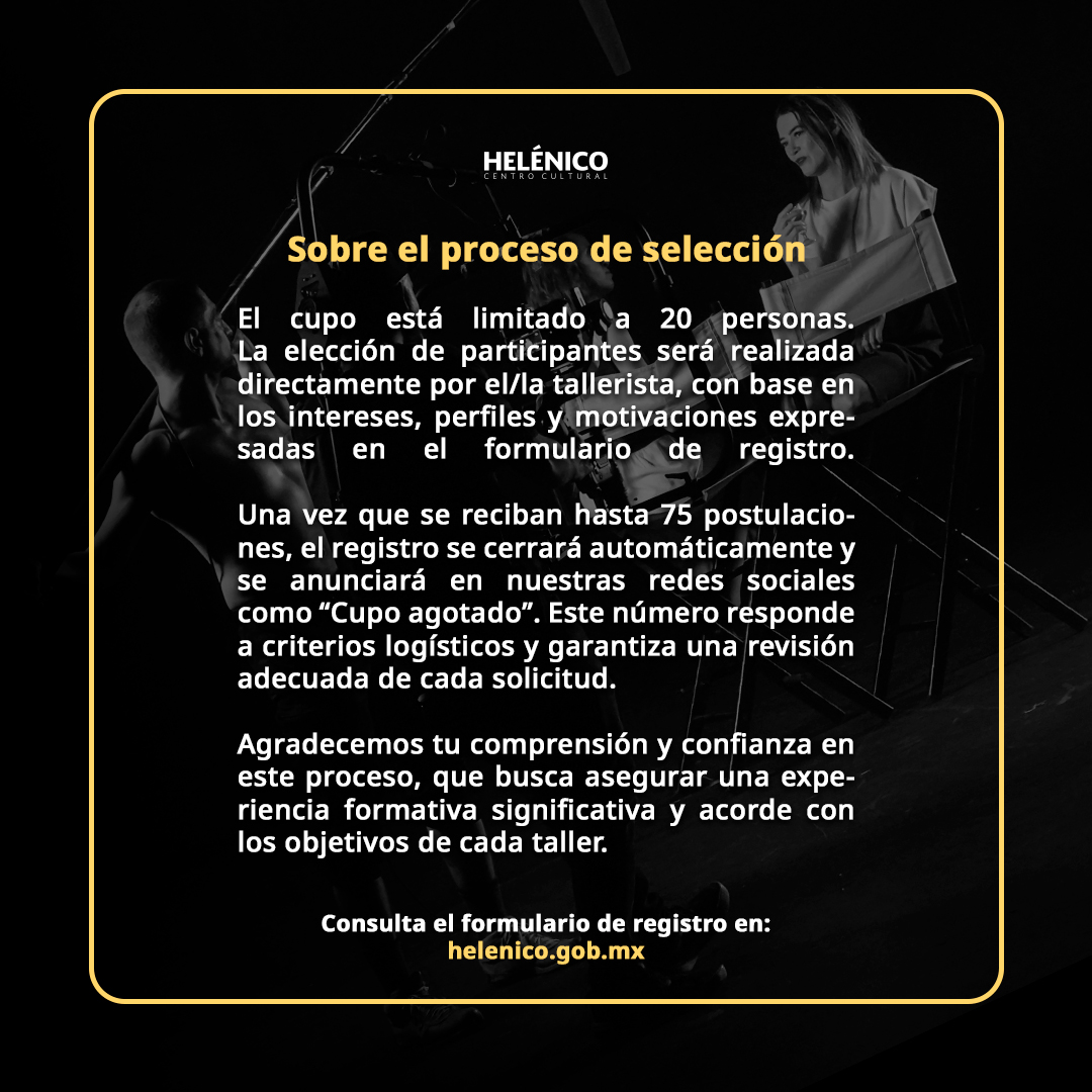 Sede: Salón de ensayos del Centro Cultural Helénico (av. Revolución 1500, col. Guadalupe Inn, Ciudad de México)