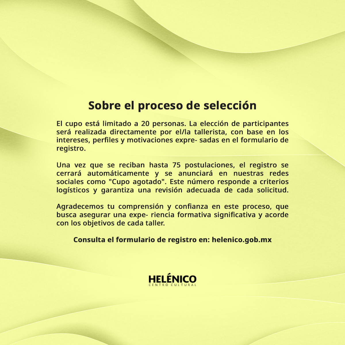 Sede: Salón de ensayos del Centro Cultural Helénico (Av. Revolución 1500, col. Guadalupe Inn, Alcaldía Álvaro Obregón, Ciudad de México)